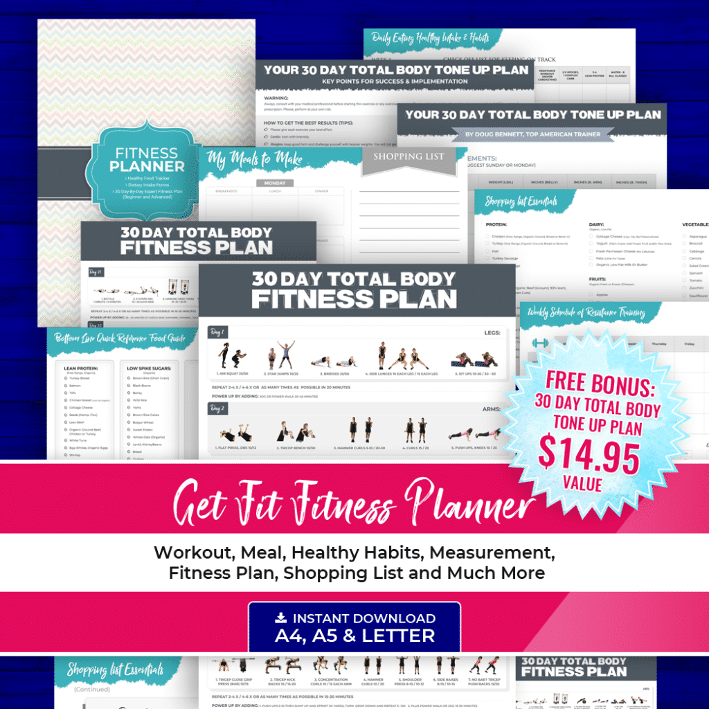 Doug Bennett, Top American Trainer, not only helps you track your healthy habits, unhealthy habits, calories, fitness routine and everything you’ll need to get results, but he also has created a daily Expert Body Changing Workout for each day that will help you get tone, fit and sexy without the bulk. Plus, he’s included a sure-fire tummy flattening diet and an advanced workout plan if you want to level up your fitness and see how he’s helped 10’s of thousands of women for the last 29 years get Amazing body changing results.