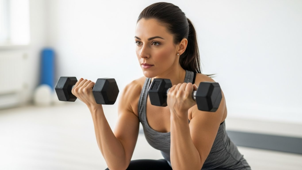 Repeat 3–4 rounds if you’re a beginner, or 4–6 rounds for advanced levels. This is a fast and effective way to sculpt arm weights for women and burn fat simultaneously.